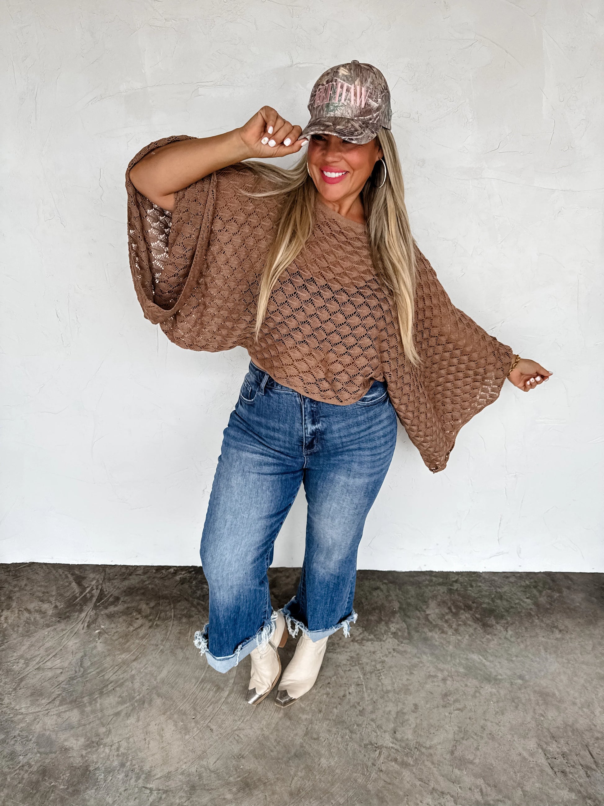 Get ready for some real cute boho vibes with this bell sleeve knit top! So easy to throw on and looks cute with everything! Flattering layering piece! This knit top is breezy cool and perfect for ALL SEASONS!